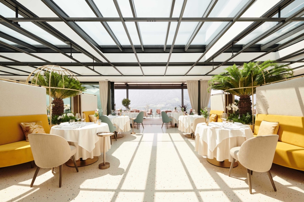 Nachdem alle Suiten und Gästezimmer im bestehenden Gebäude umgestaltet wurden, erfolgte im Winter 2020-2021 der größte Umbau, der Neubau aller öffentlichen Bereiche. Rezeption, Lobby, Shop, Bar, Speisesaal mit auffahrbarem Glasdach, Terrassen und die gesamte Küche. Zusätzlich wurden großzügige Wellness- u. Spa- Bereiche realisiert. In einer schwebenden Muschel, mit Blick über Meran, ist das Gourmet Restaurant "fine dining" untergebracht. Hier verwöhnt Hauben- u. Sternekoch Gerhard Wieser seine Gäste mit kulinarischen Köstlichkeiten.