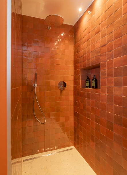 In Schenna weht ein frischer Wind - Stephan und Rita haben die Pension Fernblick Höfler in Schenna übernommen. Der neue Höfler begeistert mit einer Fassade, die Tradition neu denkt – sichtbare Balken, Rundbögen, gemusterte Holzgeländer und Wandmalerei treffen auf sattes Grün und Altrosa. Innen geht’s genauso mutig weiter: Offenes Raumkonzept, fließende Übergänge zwischen Bar, Restaurant und Rezeption, ein Mix aus frischen Farben, Vintage-Schätzen und moderner Möblierung. Die schwebende Badewanne? Eine augenzwinkernde Hommage an Heini Holzer. Und die Zimmer? Drei Themen, drei Stimmungen: Jedes erzählt seine eigene Geschichte – einfach gehalten, aber mit viel Charme und Humor. Der neue Höfler ist mehr als eine Umgestaltung – sondern ein von Anfang an ganzheitlich gelebtes Konzept.
