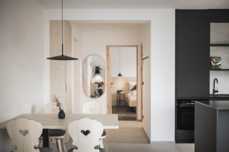 Picea ist der lateinische Name für Fichte. Drei markante Fichten umschließen das Haupthaus des Ötzerhofes und scheinen das Haus regelrecht zu schützen. Aus diesem Grund wurde die Fichte nicht nur mit dem Namen ins Haus geholt, es wurden auch Möbel aus Fichtenholz hergestellt, die der modernen und minimalistischen Architektur der Ferienwohnungen das liebevolle und behagliche Ambiente verleihen. Die Themen "Ruhe, Entspannung und Natur" wurden in Architektur übersetzt und kompletieren das Konzept des Betriebes.