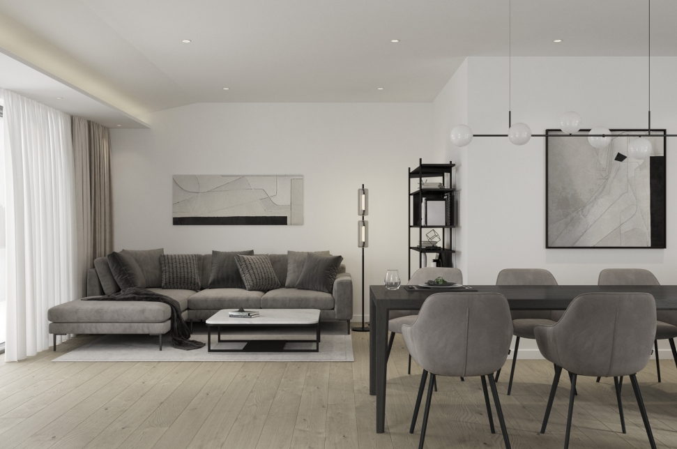 Das Luxus Penthouse in Prien am Chiemsee. In einer größeren Wohnanlage eines Bauträgers, die sich im Bau befindet, haben unsere Kunden eine der drei Penthousewohnungen erworben. Die bisher geplante Familienwohnung sollte als Altersruhesitz umgestaltet werden. Entstanden ist eine Penthousewohnung der Extraklasse, mit durchgehender Formensprache und hochwertigen Materialien.