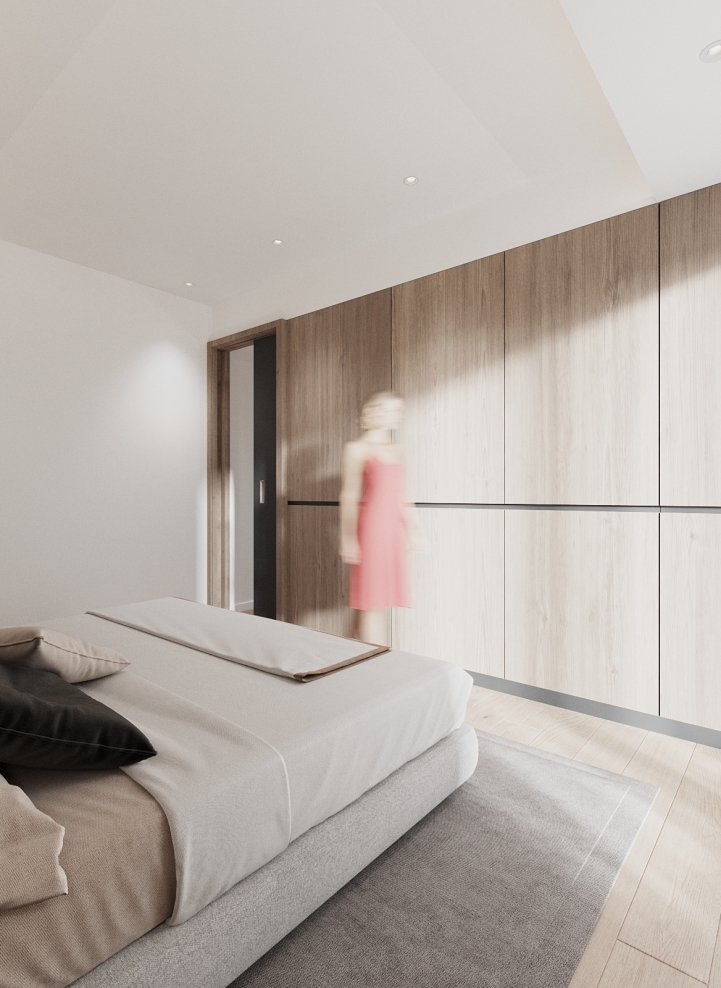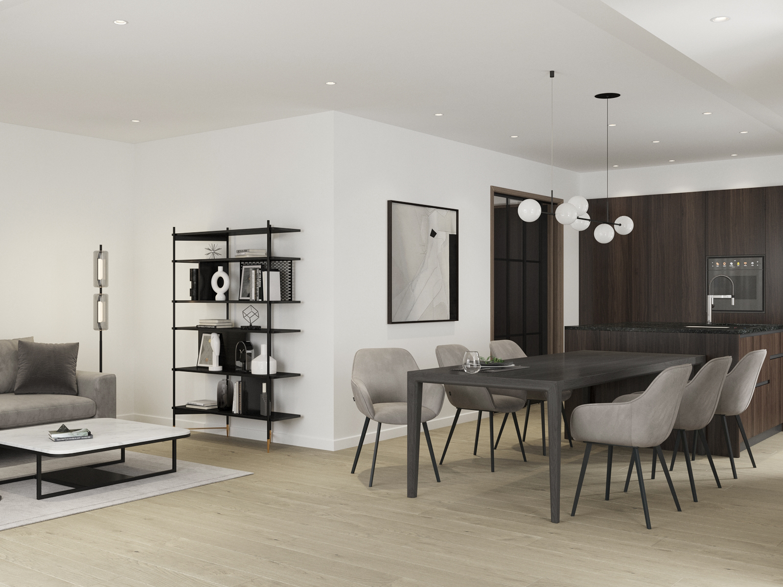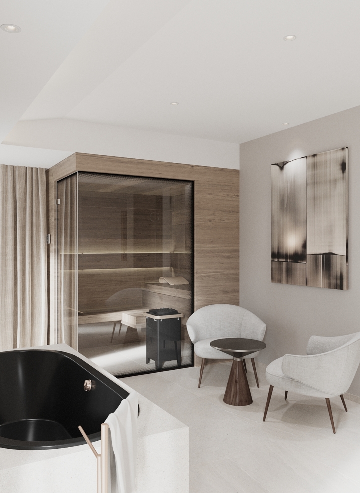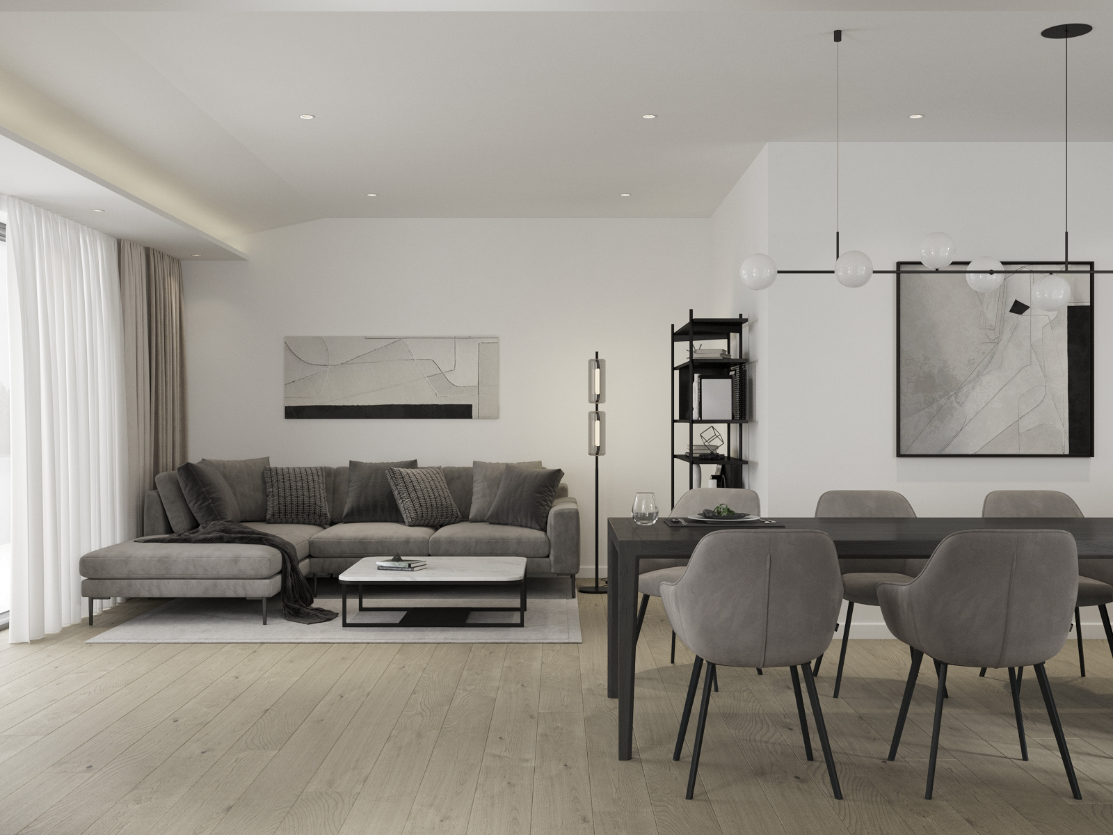 The luxury penthouse in Prien am Chiemsee. Our clients have purchased one of the three penthouse flats in a large residential complex of a property developer that is currently under construction. The previously planned family flat was to be remodelled as a retirement home. The result is a top-class penthouse flat with a consistent design language and high-quality materials.