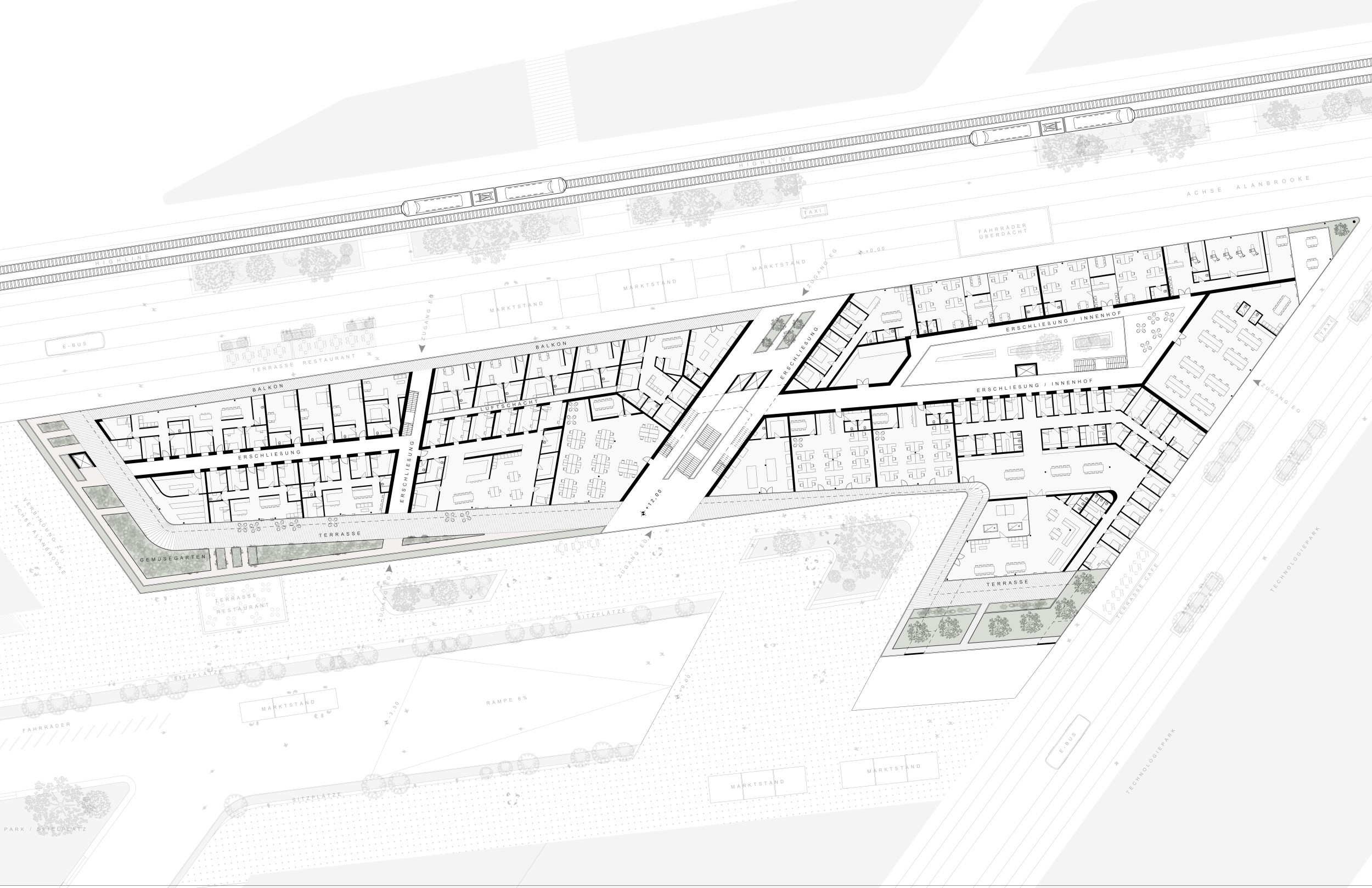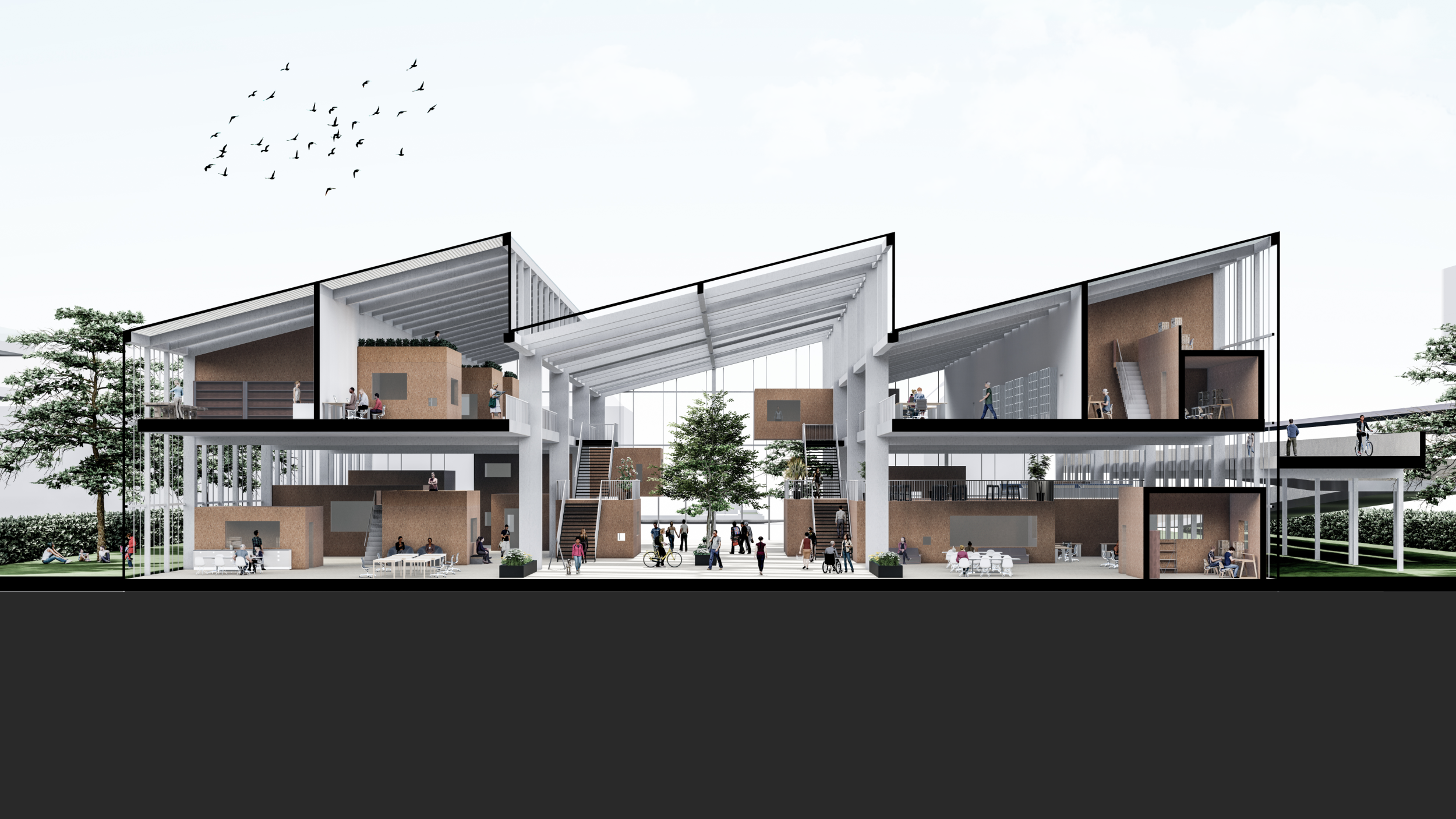 The old military site is to be transformed into a neighbourhood with a high functional and spatial density. A neighbourhood where you can look out onto green facades, where the streets are transformed into squares, where traffic is slowed down and where people come together. Where young and old live and work together, where the barrier between town and country gradually disappears. Where agriculture in the city is being rethought and where culture and community play an important role.