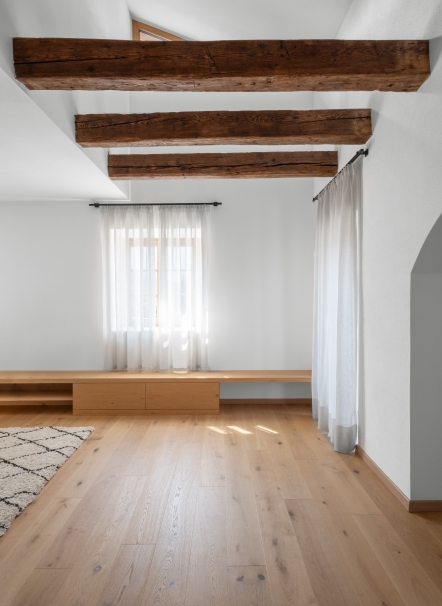 I due fratelli Markus e Hannes fanno uscire dal torpore la casa colonica dei genitori, che è un edificio tutelato. Il progetto: due appartamenti moderni per le loro famiglie. Tuttavia, l'edificio era sfitto da diversi anni ed è stato ampiamente ristrutturato da noi in stretta collaborazione con l'ufficio del patrimonio. L'edificio è stato completamente sventrato e sono stati conservati elementi importanti come i muri in pietra e le volte. Il tessuto edilizio di minor valore storico, invece, è stato rimosso per creare stanze spaziose e luminose. Ha funzionato. Grazie a Markus e Hannes.